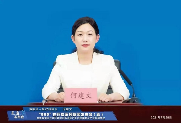 7月28日,武汉市人民政府新闻办公室举办“965”在行动系列新闻发布会,黄陂区人民政府区长何建文向媒体发布黄陂区产业地图编制和产业发展情况。
