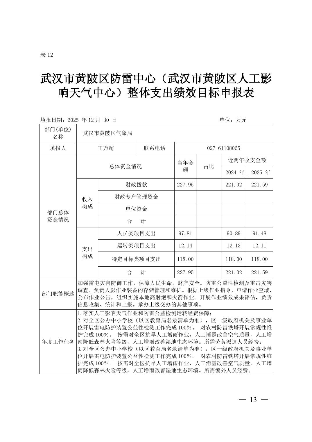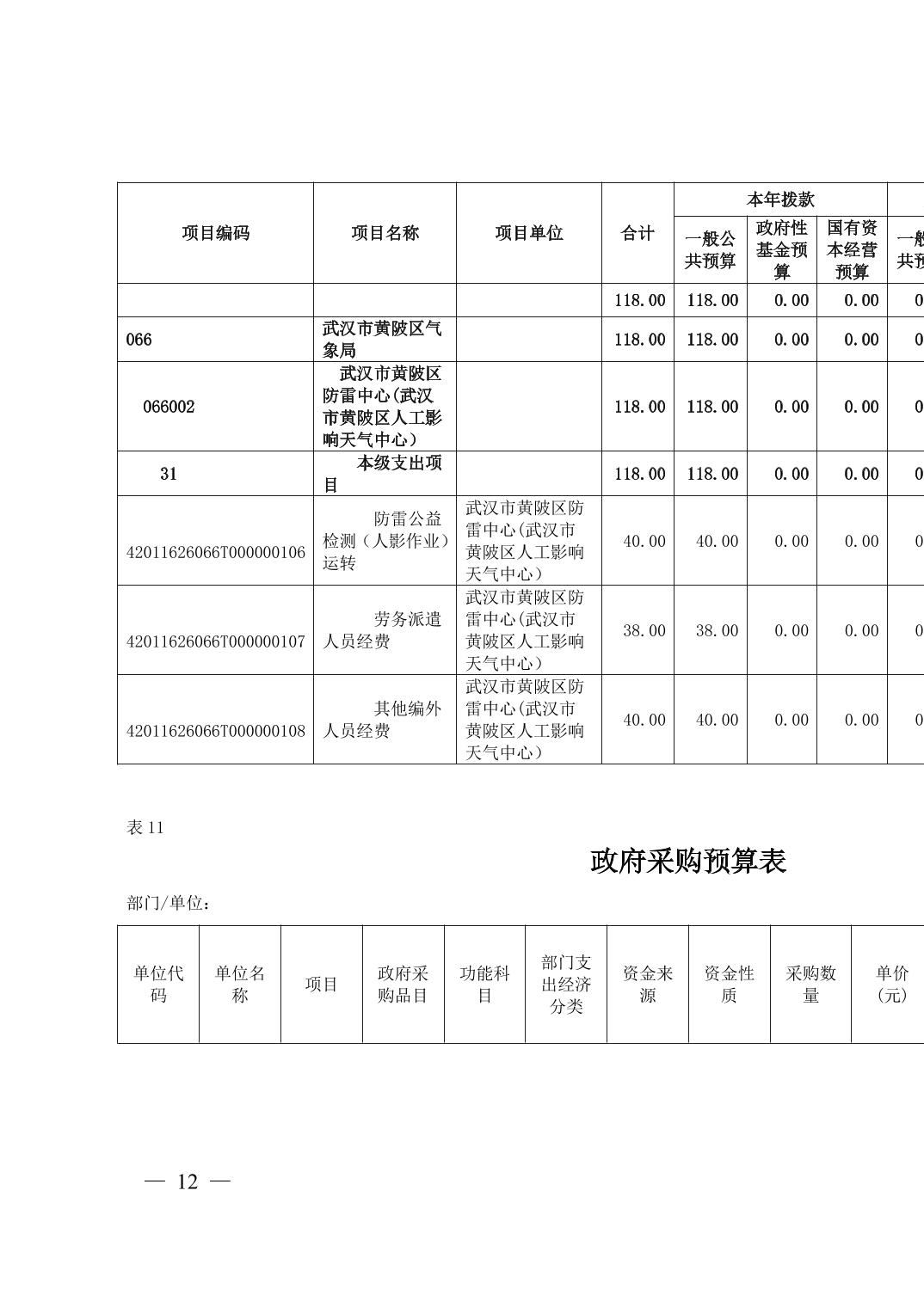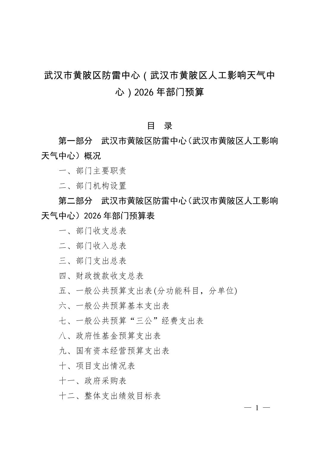 武汉市黄陂区防雷中心(武汉市黄陂区人工影响天气中心)2026年度预算