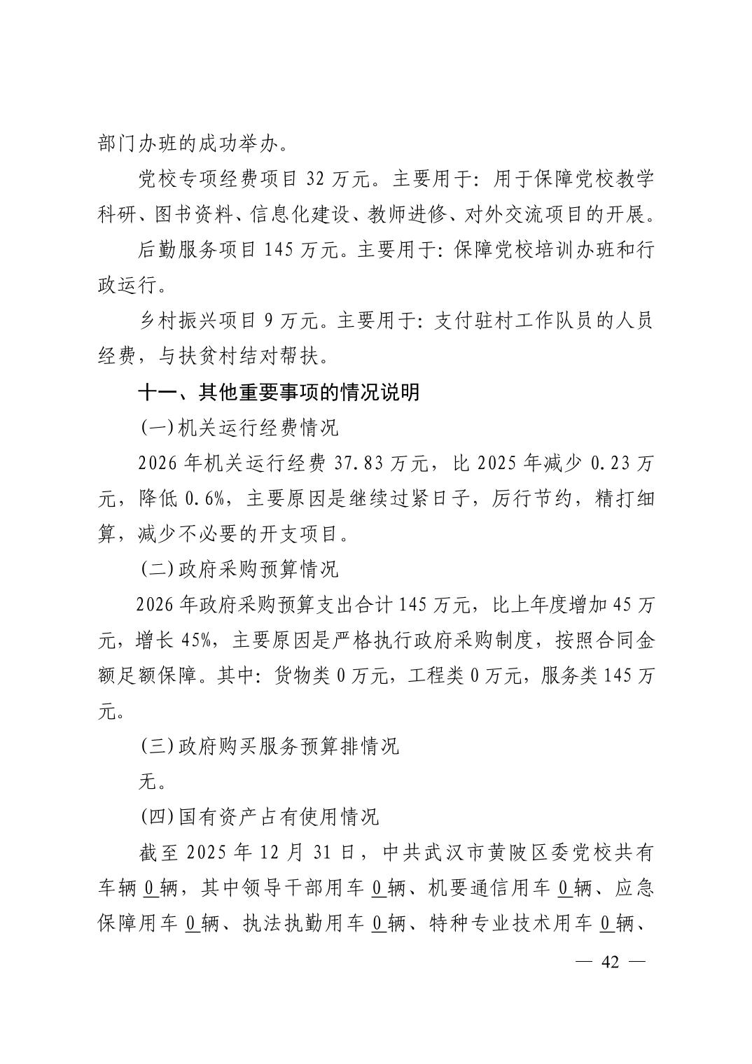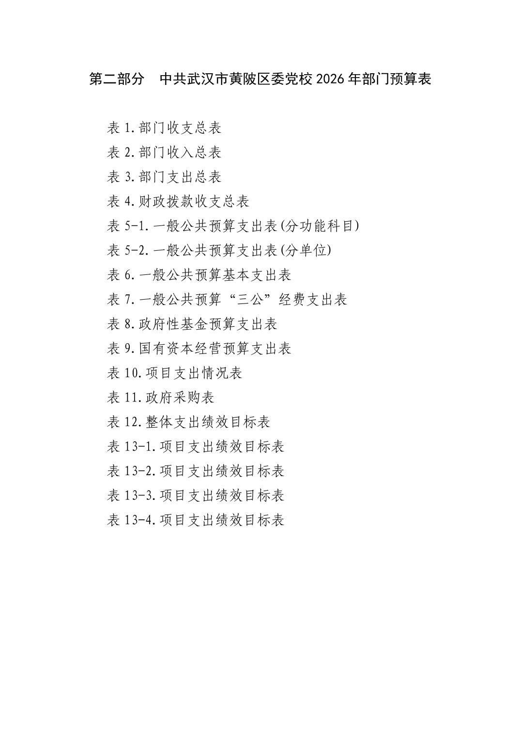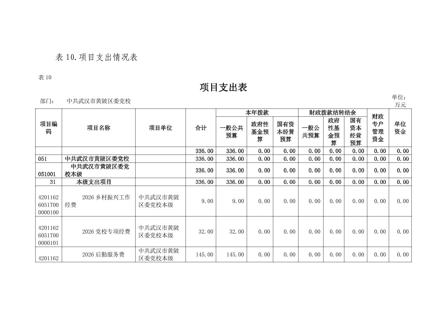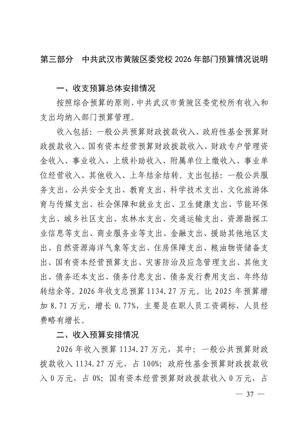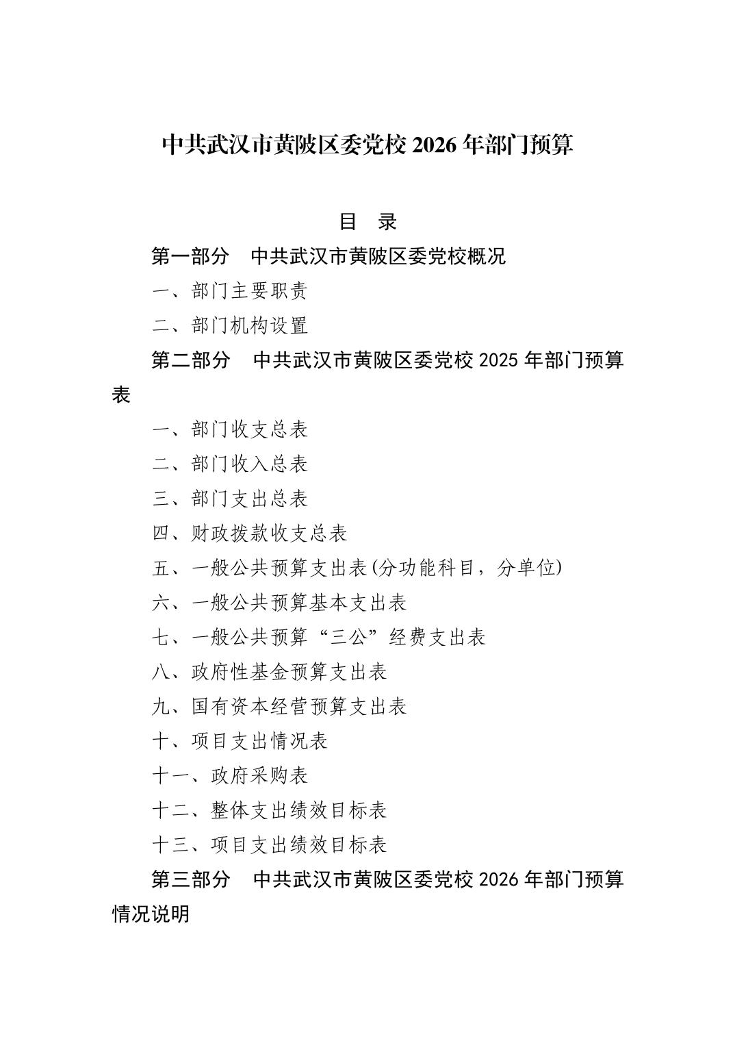 2026年中共武汉市黄陂区委党校部门预算公开