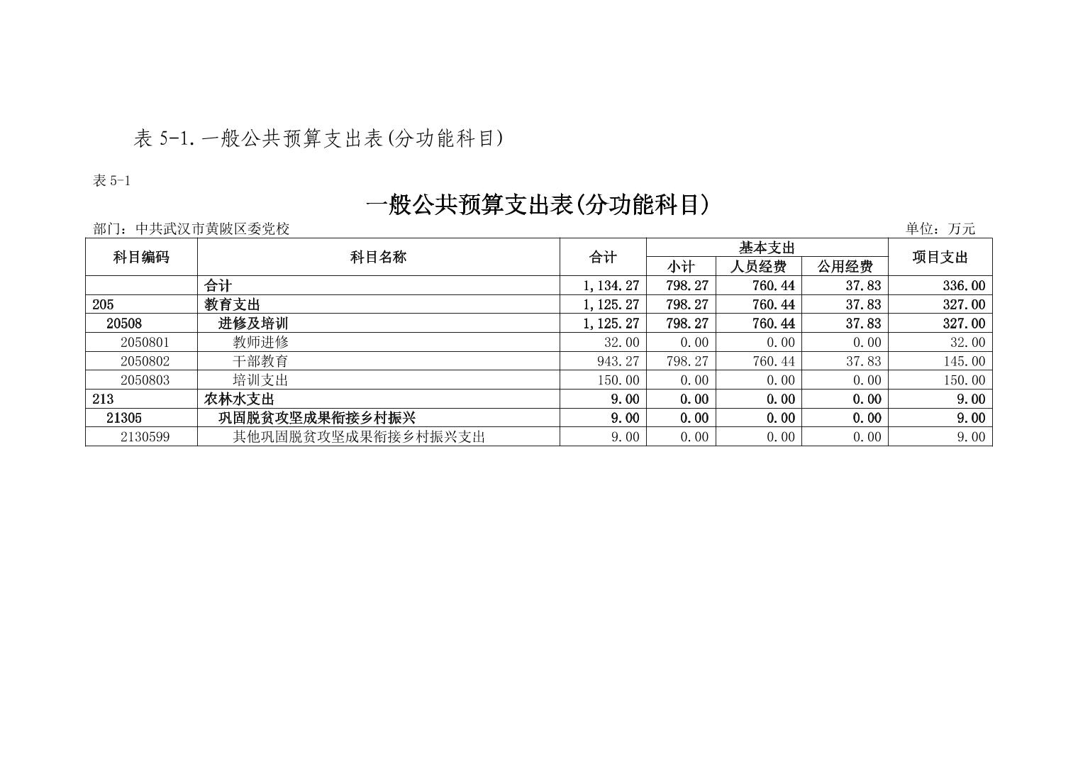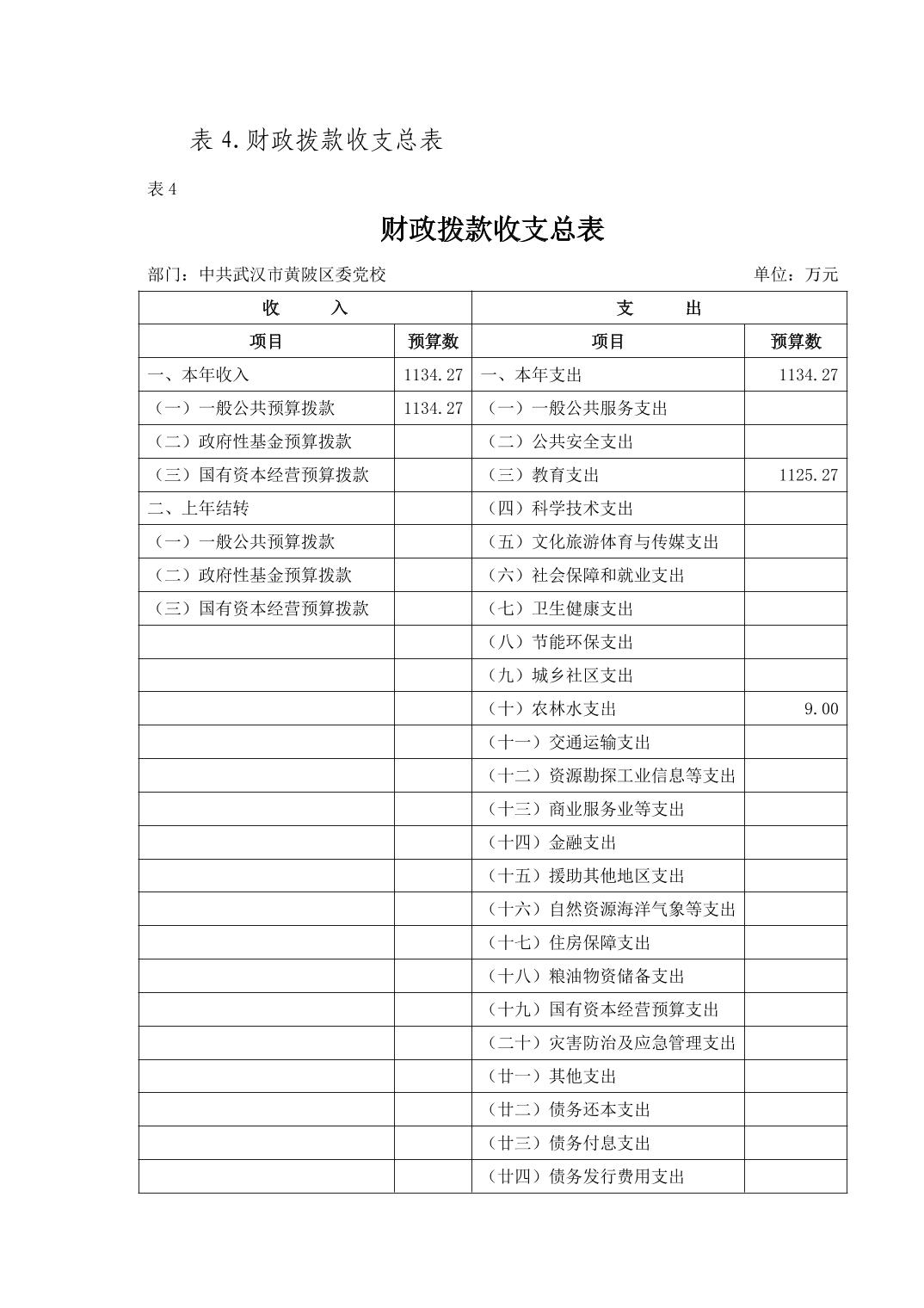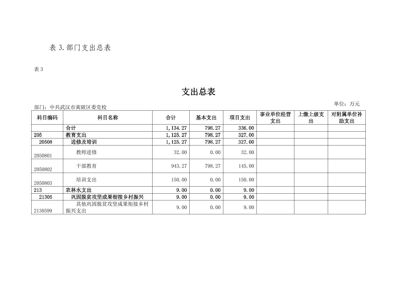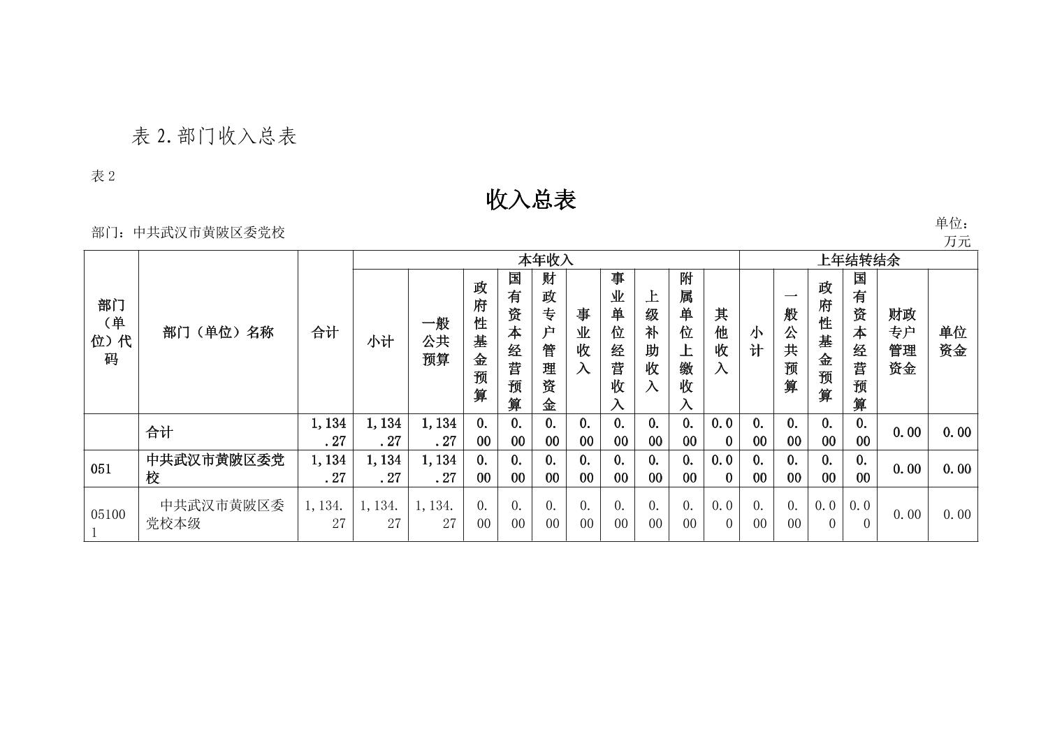 2026年中共武汉市黄陂区委党校部门预算公开