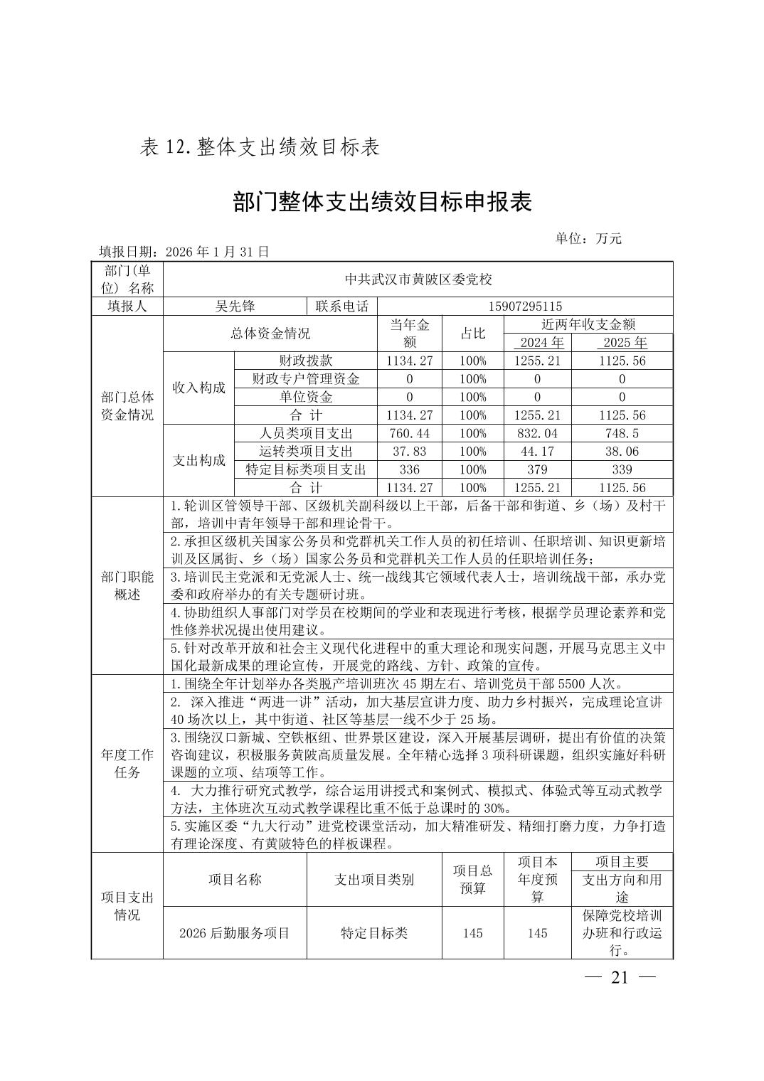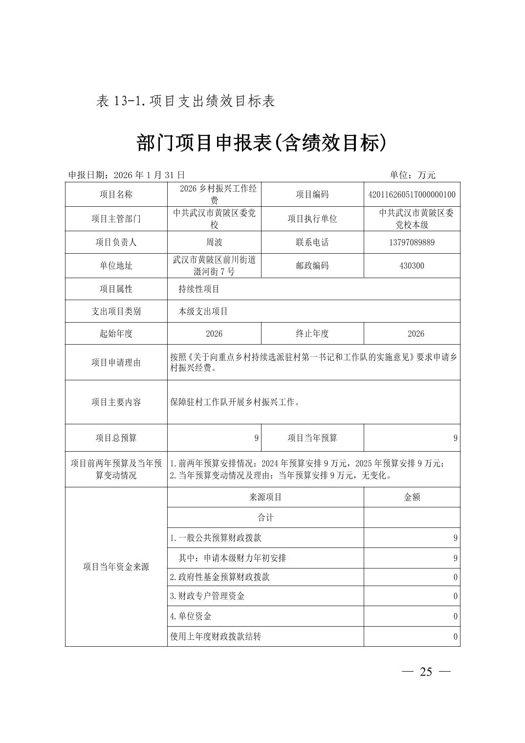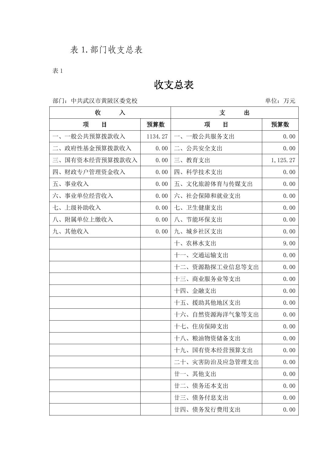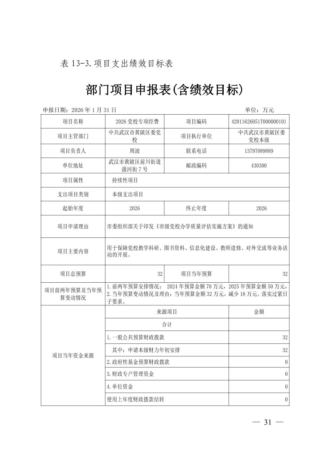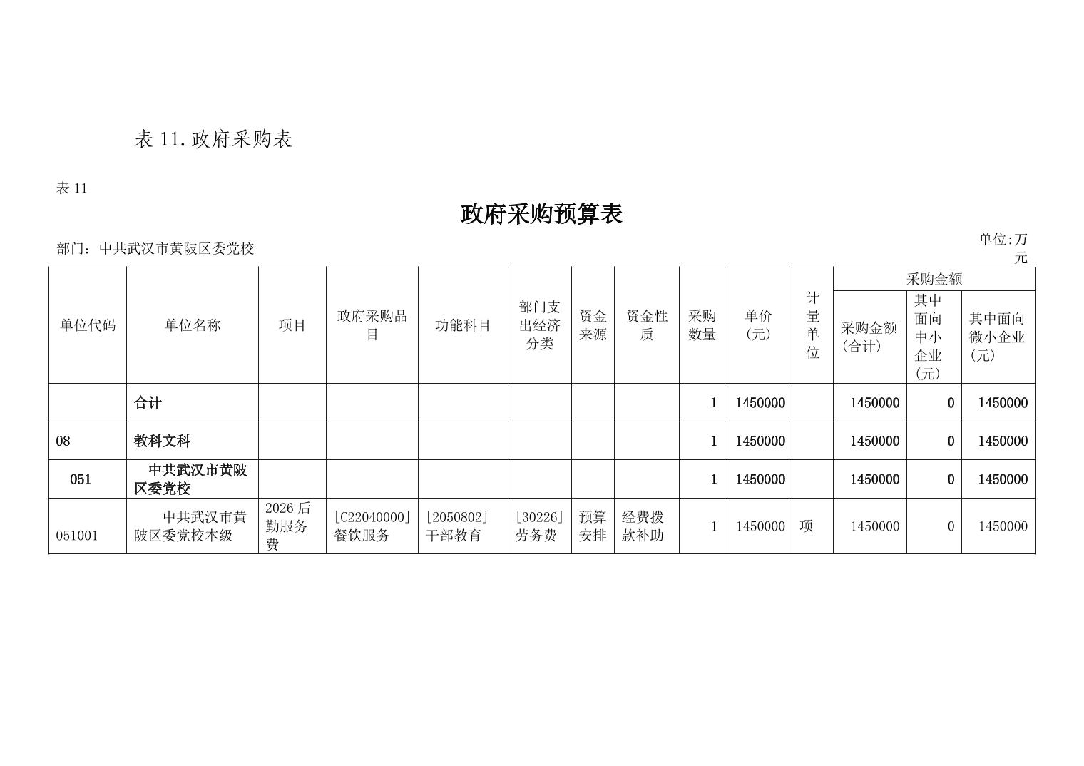 2026年中共武汉市黄陂区委党校部门预算公开
