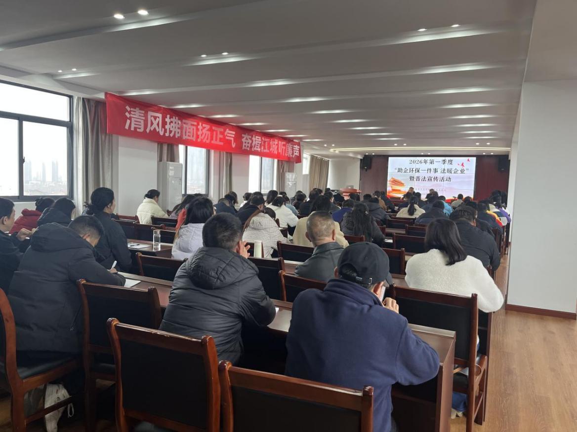 为深入优化营商环境,践行“法治是最好的营商环境”理念,2026年3月19日上午,区生态环境分局党组成员、专职副大队长郑红刚在七楼会议室主持召开了2026年第一季度“助企环保一件事·法暖企业”普法活动。执法支队十一大队、监测站全体人员以及辖区内排污监管重点单位和排污许可重点管理单位等57家企业代表共同参加会议。