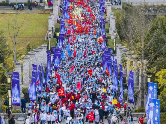 万众共聚木兰山,携手迈向新征程! 11月4日,由中国登山协会指导,武汉市体育局、武汉市总工会、黄陂区人民政府主办的2023全国群众健身登山大会(木兰山站)暨中国武汉第十二届“洋河·梦之蓝杯”木兰山登山节在木兰山风景区盛大开幕。