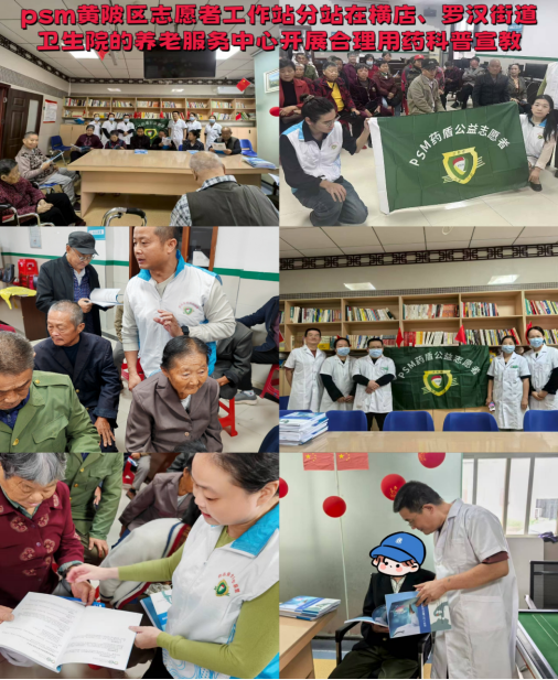 本次活动由黄陂区人民医院、区临床药学质控中心及PSM药盾公益黄陂工作站联合承办,汇聚全区39家医疗机构的药师志愿者力量。区人民医院院长杨国良、副院长胡启江、罗勇等领导亲临指导,推动形成医院、社区、养老中心多层次联动的科普服务网络。