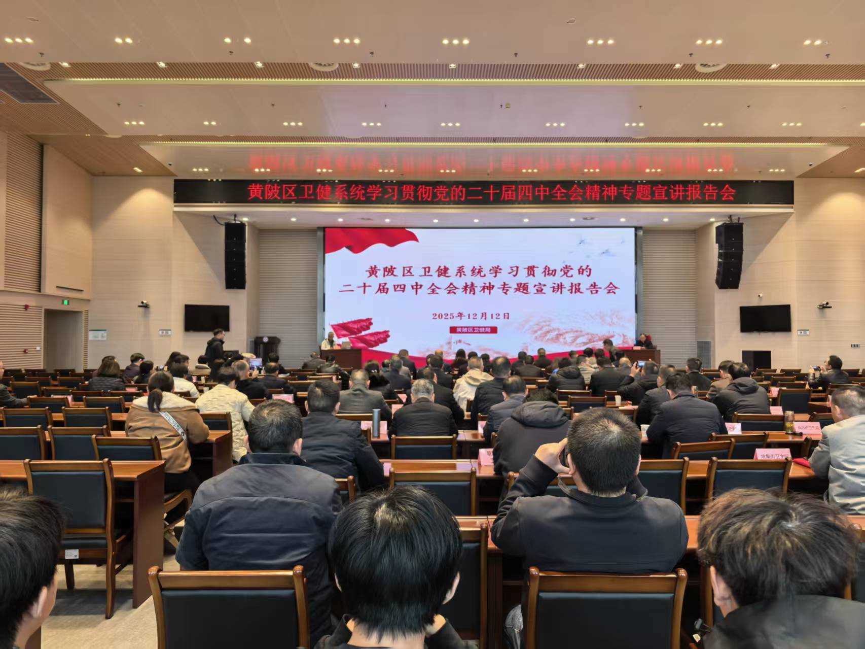 2025年12月12日下午,区委宣讲团成员、区人民政府副区长、区卫健局局长姜明到区人民医院,面向卫健系统干部群众代表宣讲党的二十届四中全会精神,进一步推动全会精神在“健康黄陂”建设中贯彻落实到位。