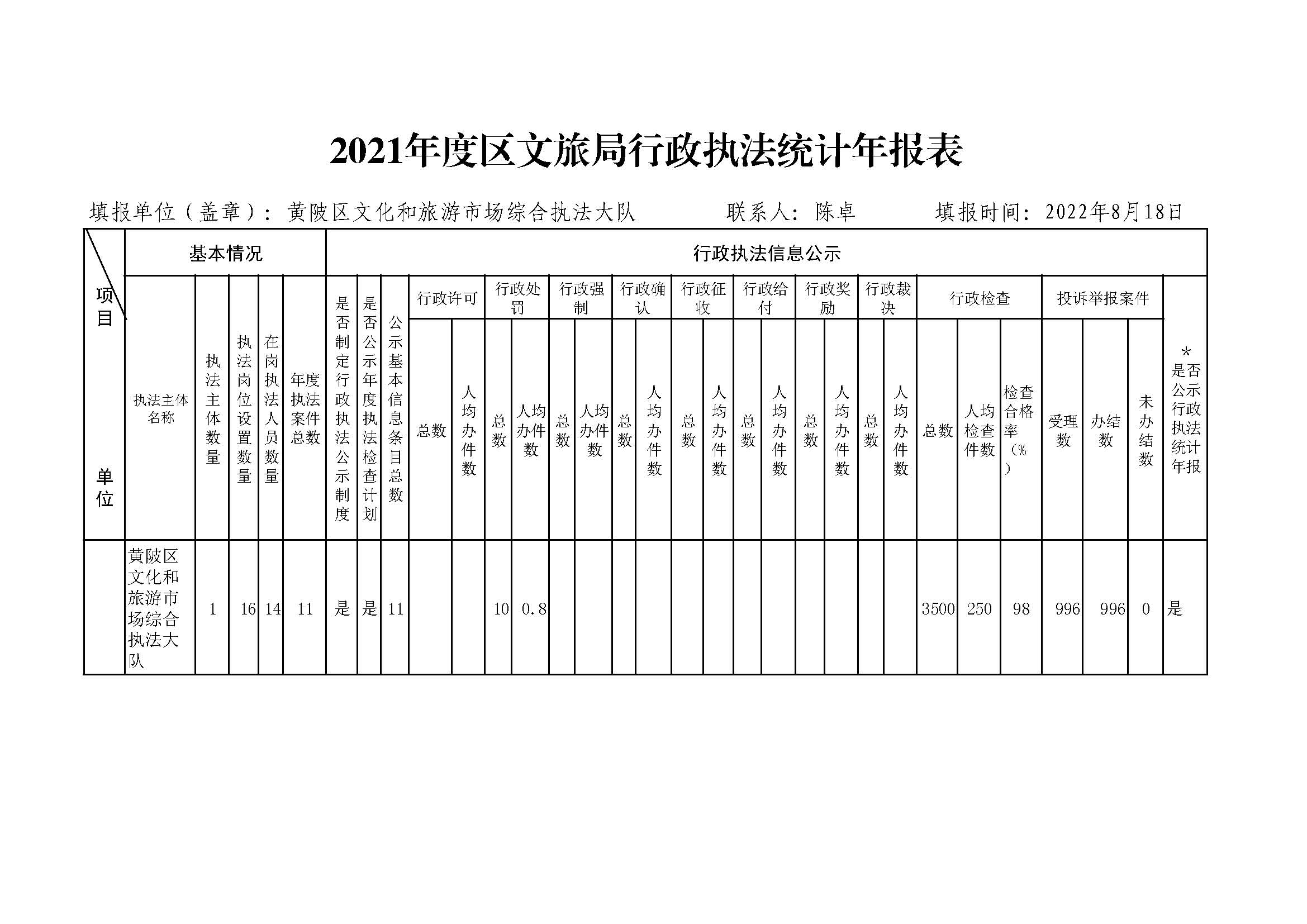 2021年度区文旅局行政执法统计年报表