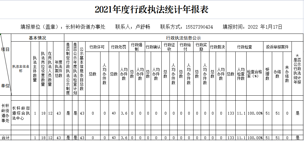 2021年度长轩岭街行政执法统计年报表