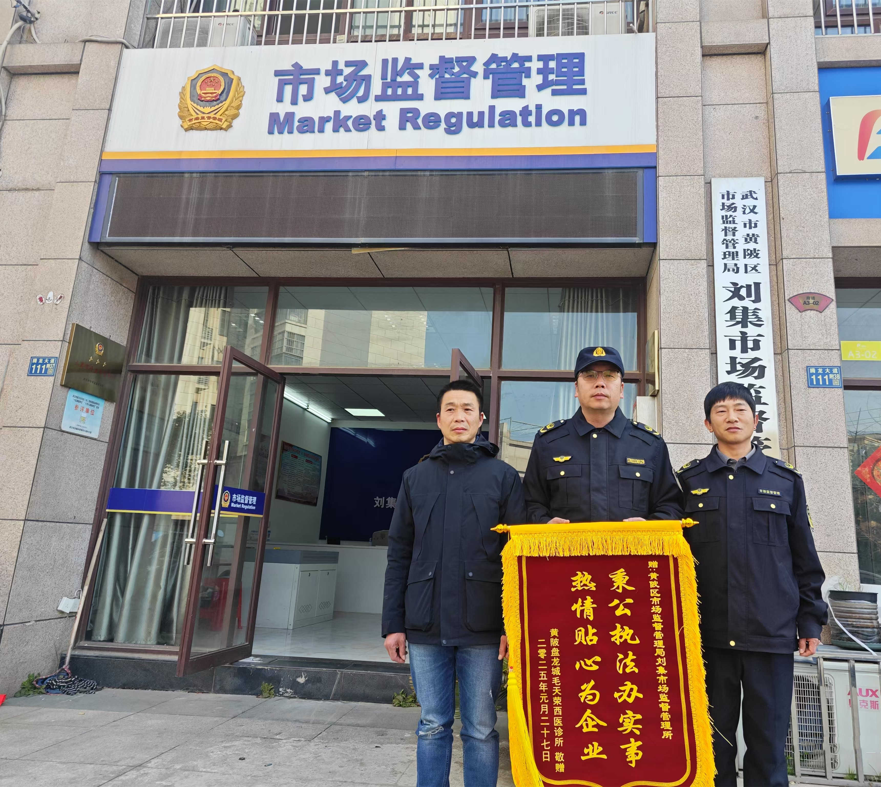 2025年1月27日,武汉市黄陂区市场监管局刘集市场监督管理所收到一面来自某企业的锦旗,锦旗上写着“秉公执法办实事 热情贴心为企业”,表达了对市场监管部门柔性执法的衷心感谢。锦旗不仅是感谢,也是黄陂区市场监管局秉持“首违不罚”原则,践行监管为民,释放执法温度,不断优化营商环境,赢得经营主体认可的真实写照。