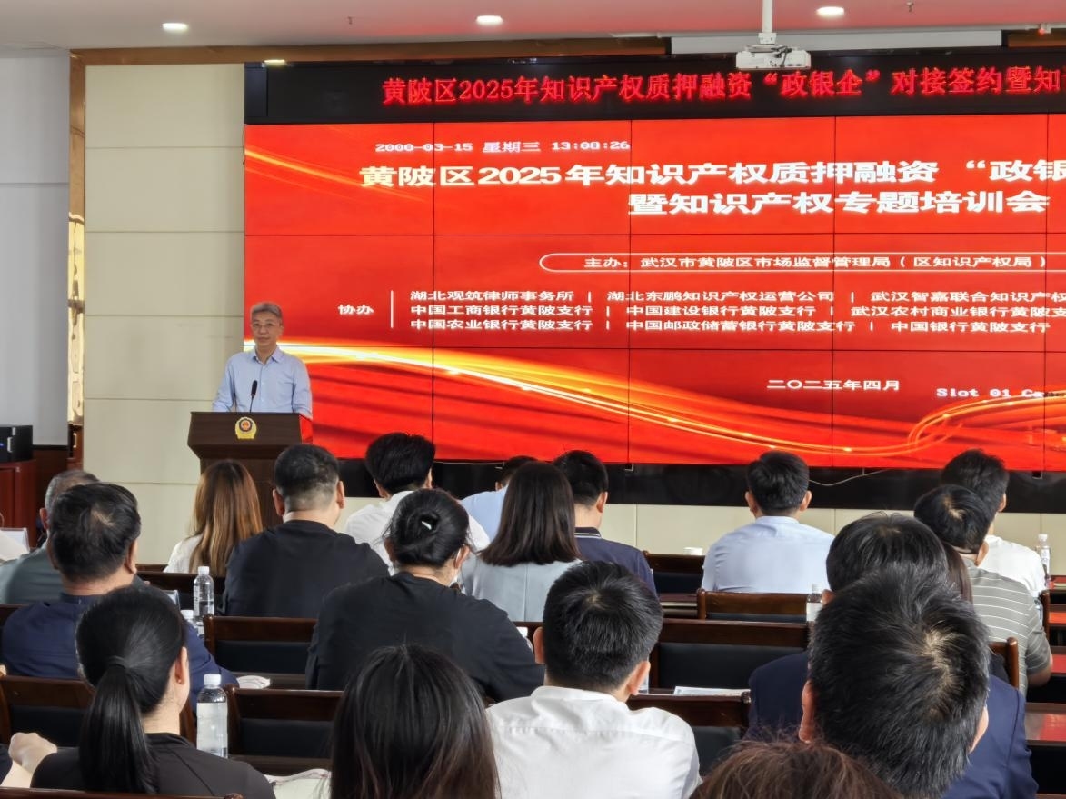 2025年全国知识产权宣传周期间,4月25日,由武汉市黄陂区市场监督管理局(区知识产权局)主办的2025年知识产权质押融资“政银企”对接暨知识产权专题培训会隆重举办。黄陂区知识产权重点企业代表、相关金融机构、区市场监督管理局工作人员近百余人参加,黄陂区人民政府副区长姜明出席会议并讲话。