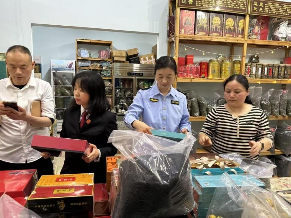 4月24日,武汉市黄陂区市场监管局联合江岸区人民法院、知识产权(前川)保护站和区土特产协会、汉口北知识产权纠纷调解室等组成专项执法组,对汉口北食品城茶叶专区开展地理标志保护专项行动,筑牢区域特色品牌保护防线。