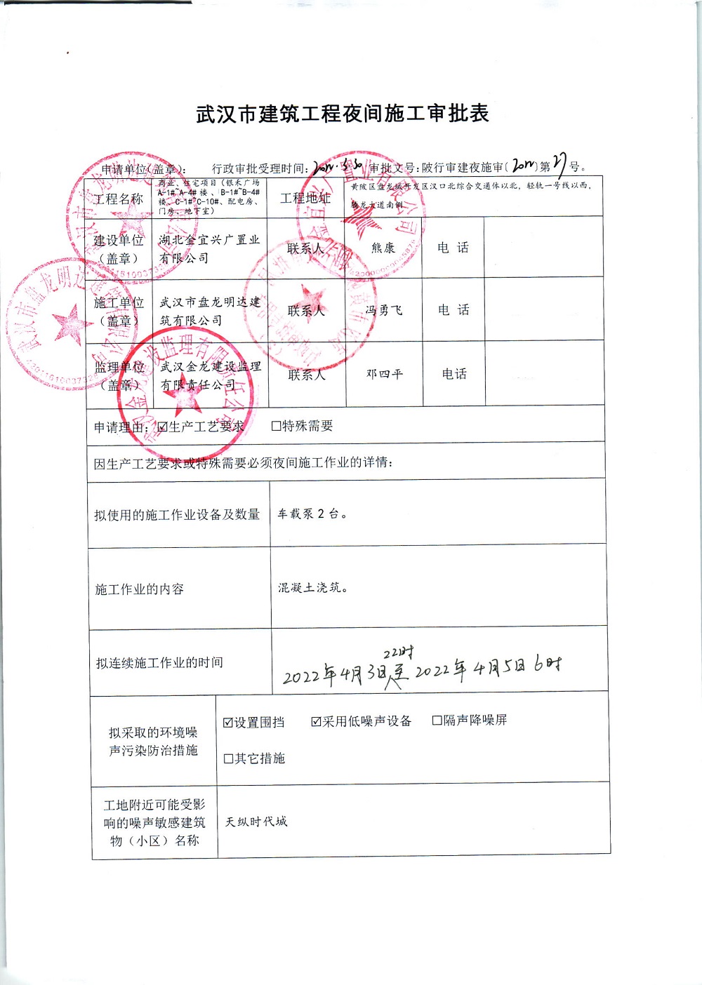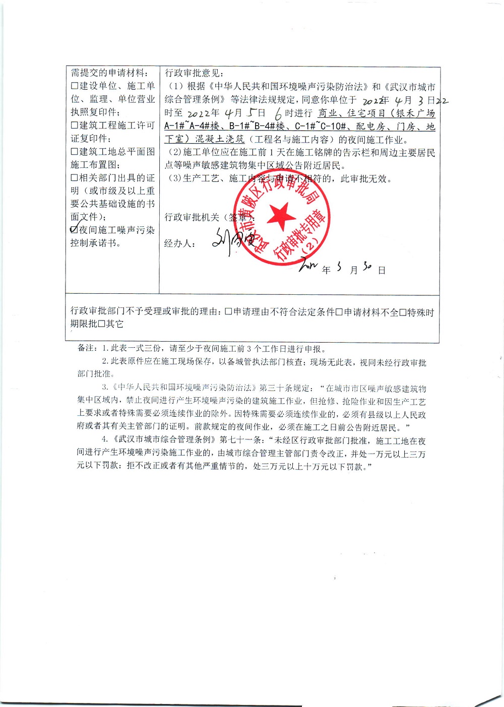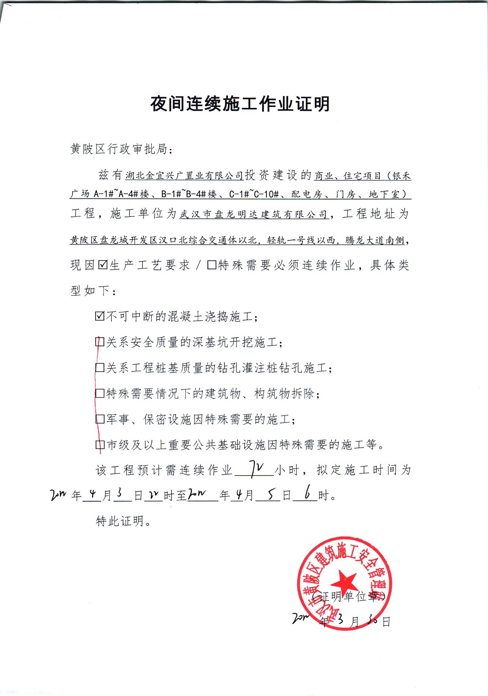 商业、住宅项目(银禾广场A-1#~A-4#楼、B-1#~B-4#楼、C-1#~C-10#楼、配电房、门房、地下室)夜间施工审批公示