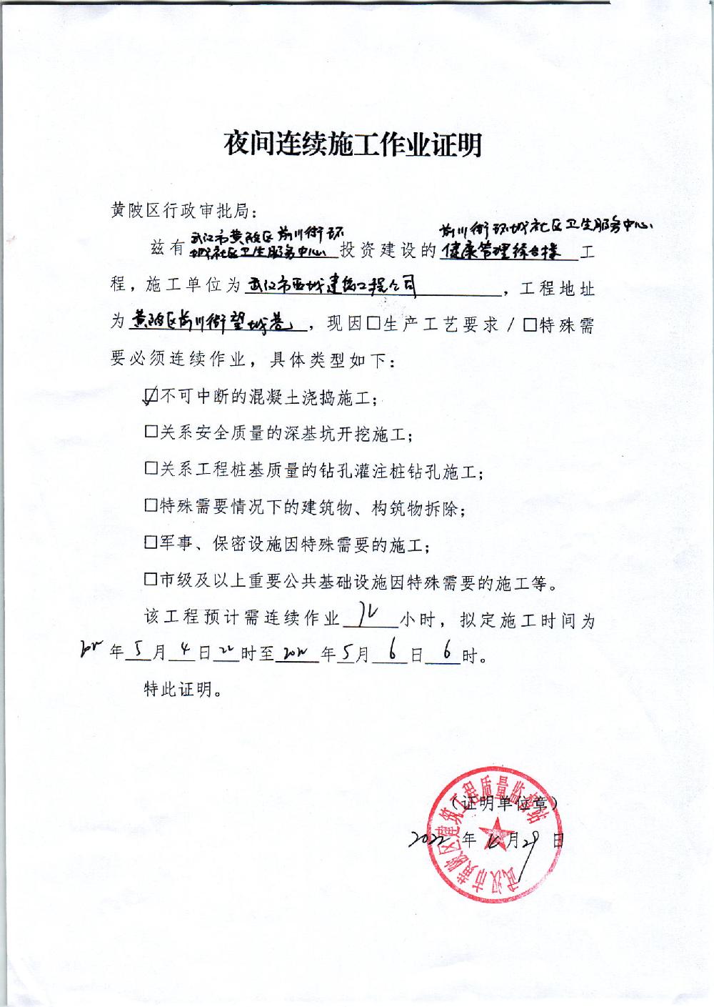 前川街环城社区卫生服务中心健康管理综合楼工程夜间施工审批公示