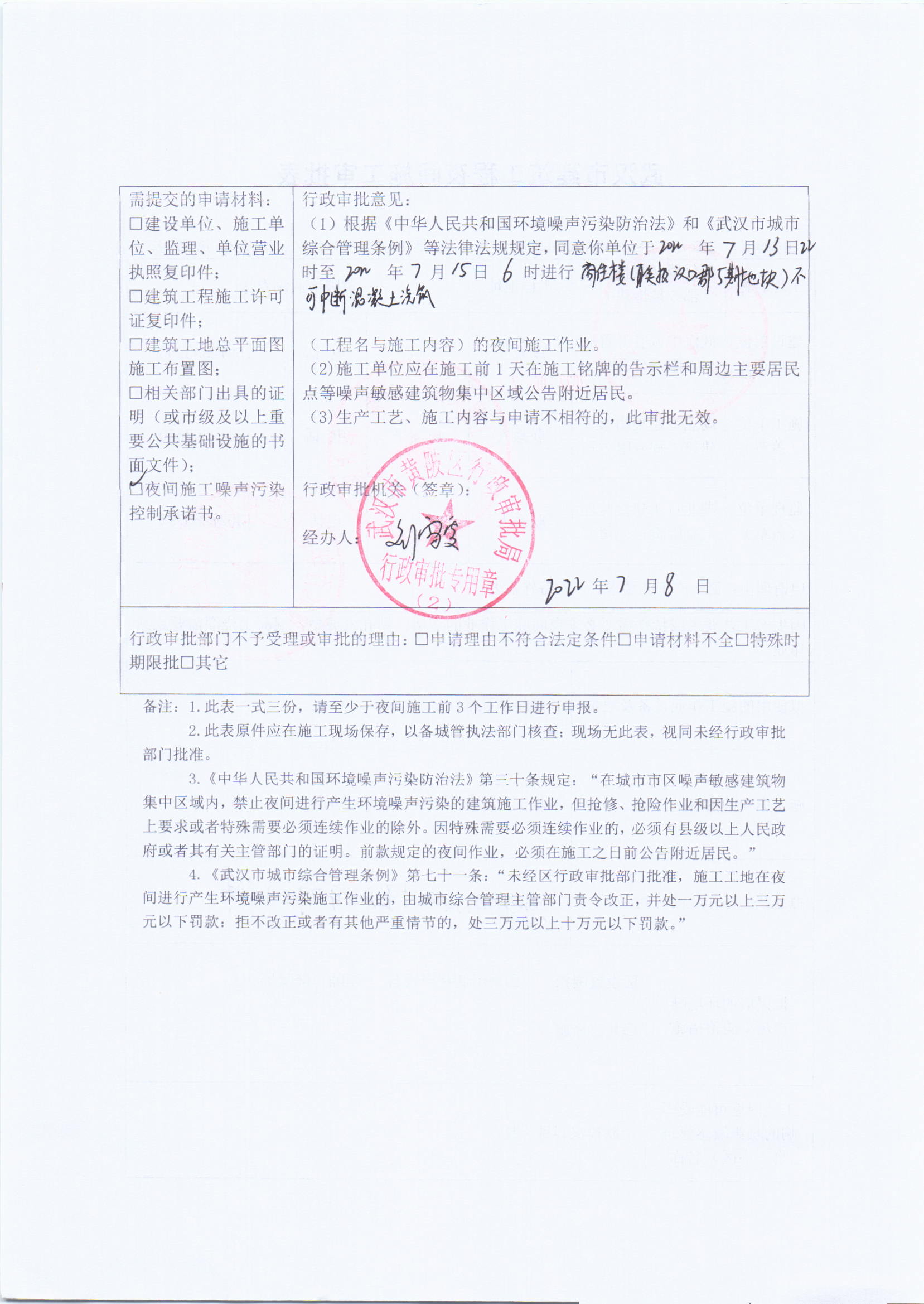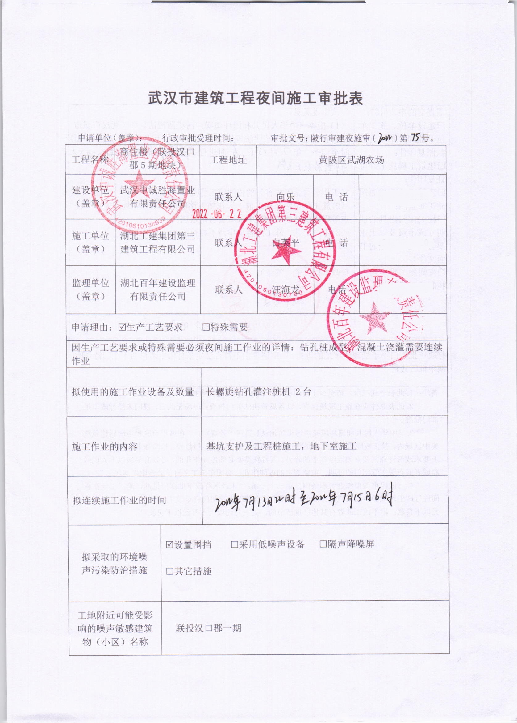 商住楼(联投汉口郡5期地块)夜间施工审批公示