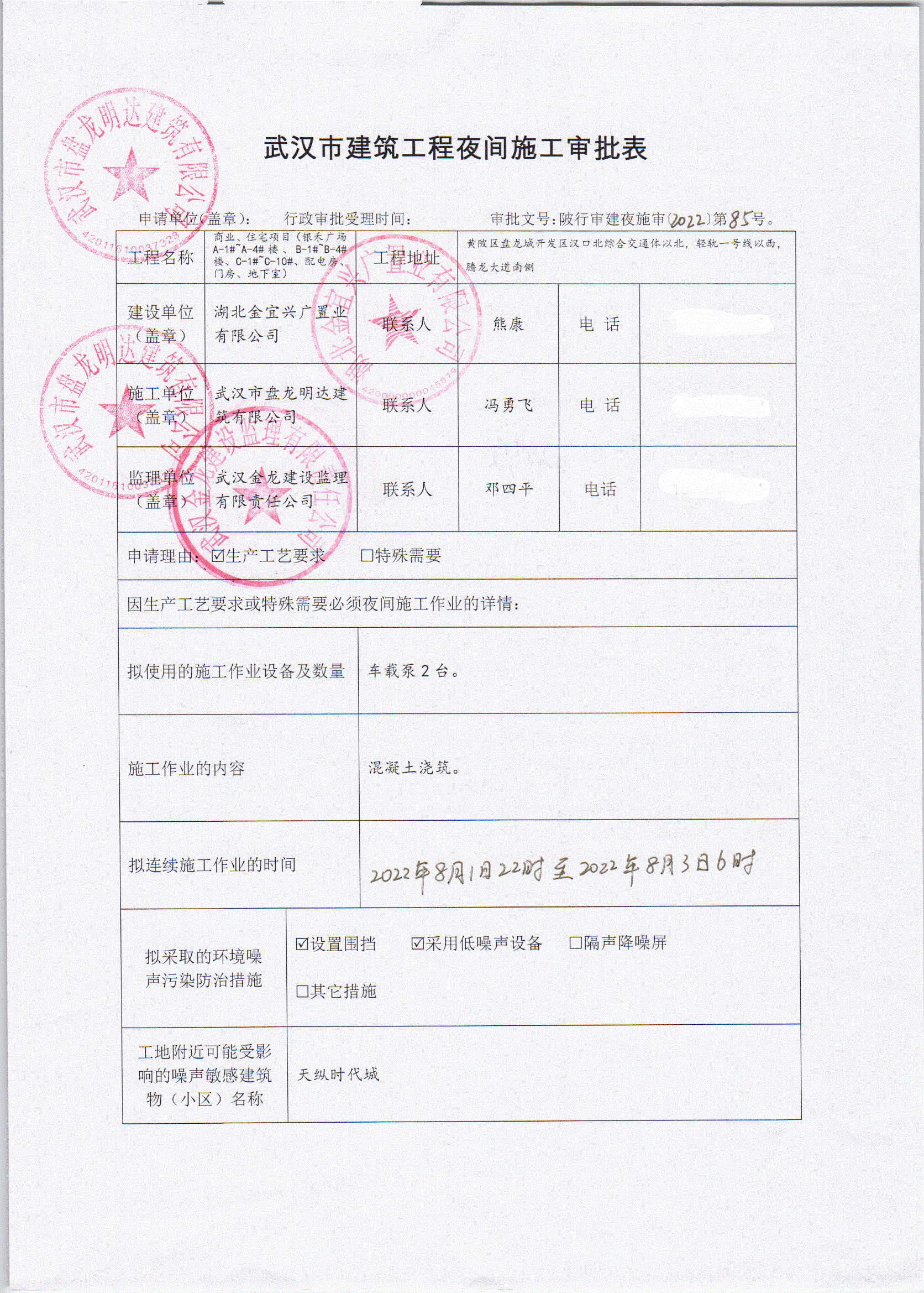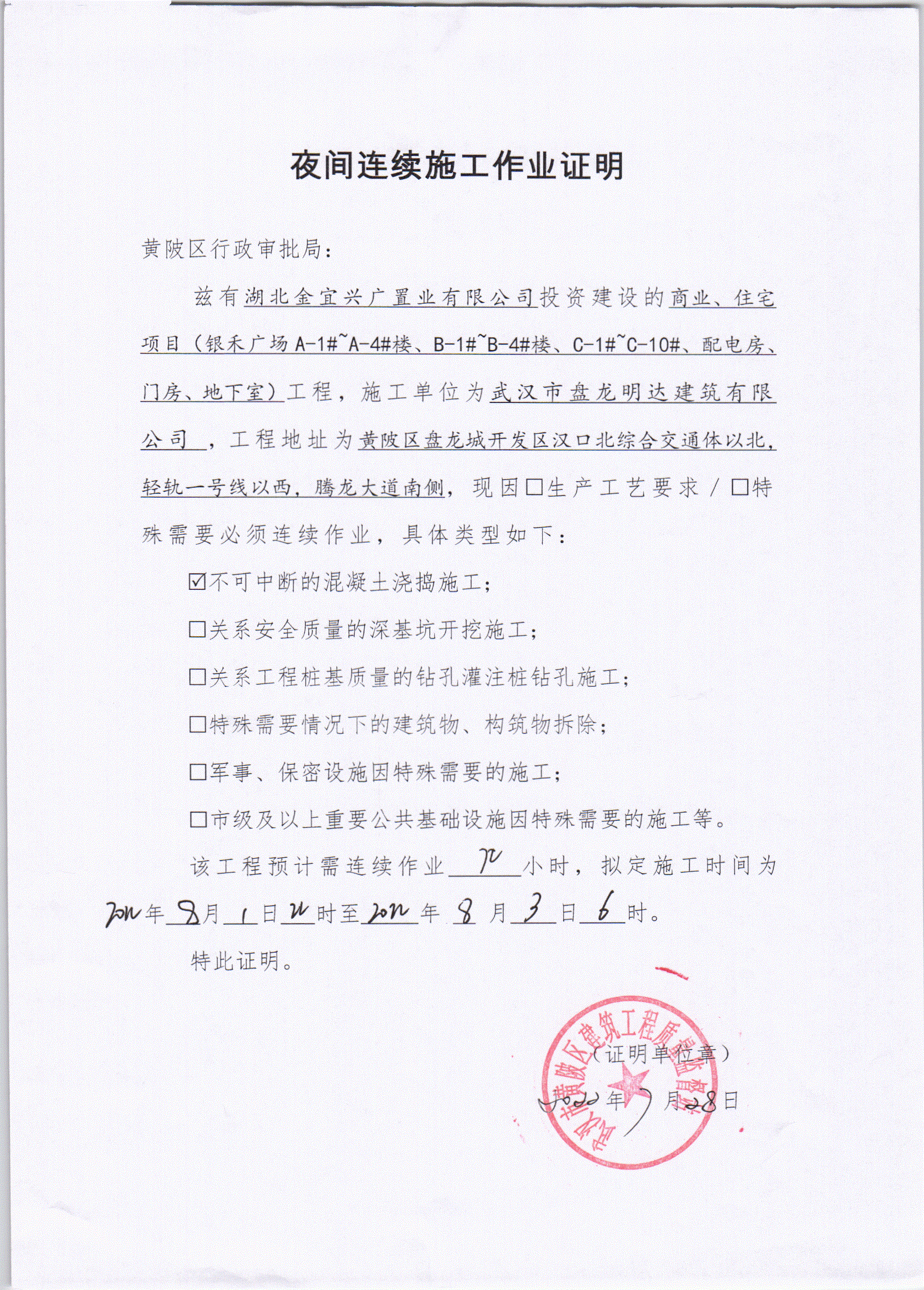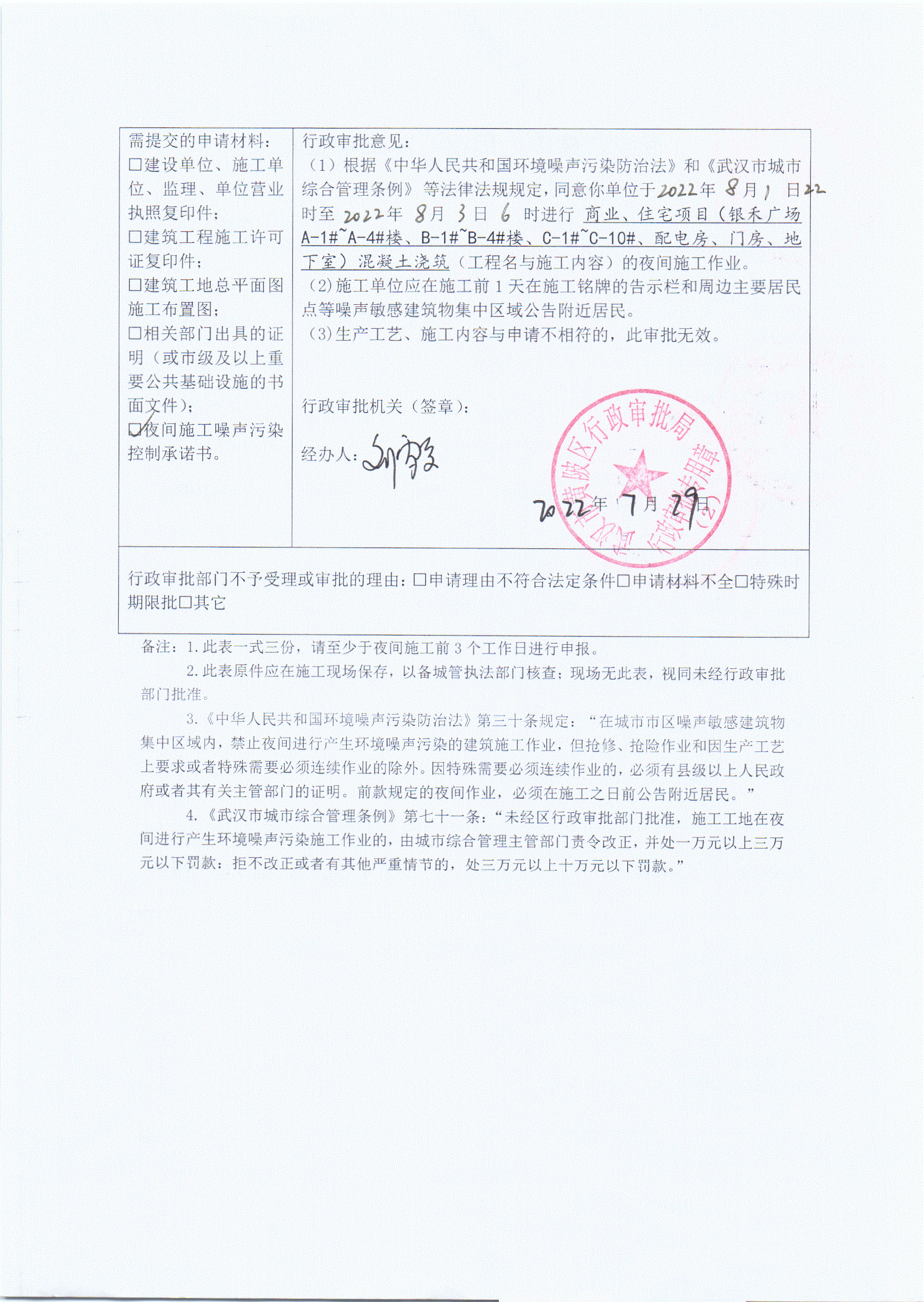 商业、住宅项目(银禾广场A-1#~A-4#楼、B-1#~B-4#楼、C-1#~C-10#、配电房、门房、地下室))夜间施工审批公示