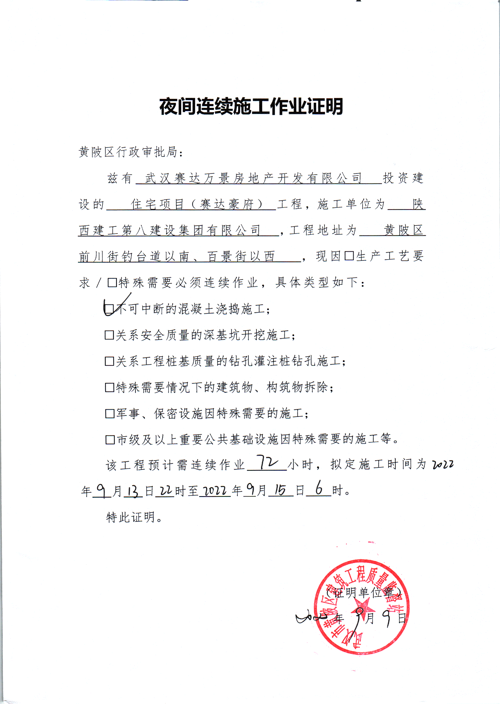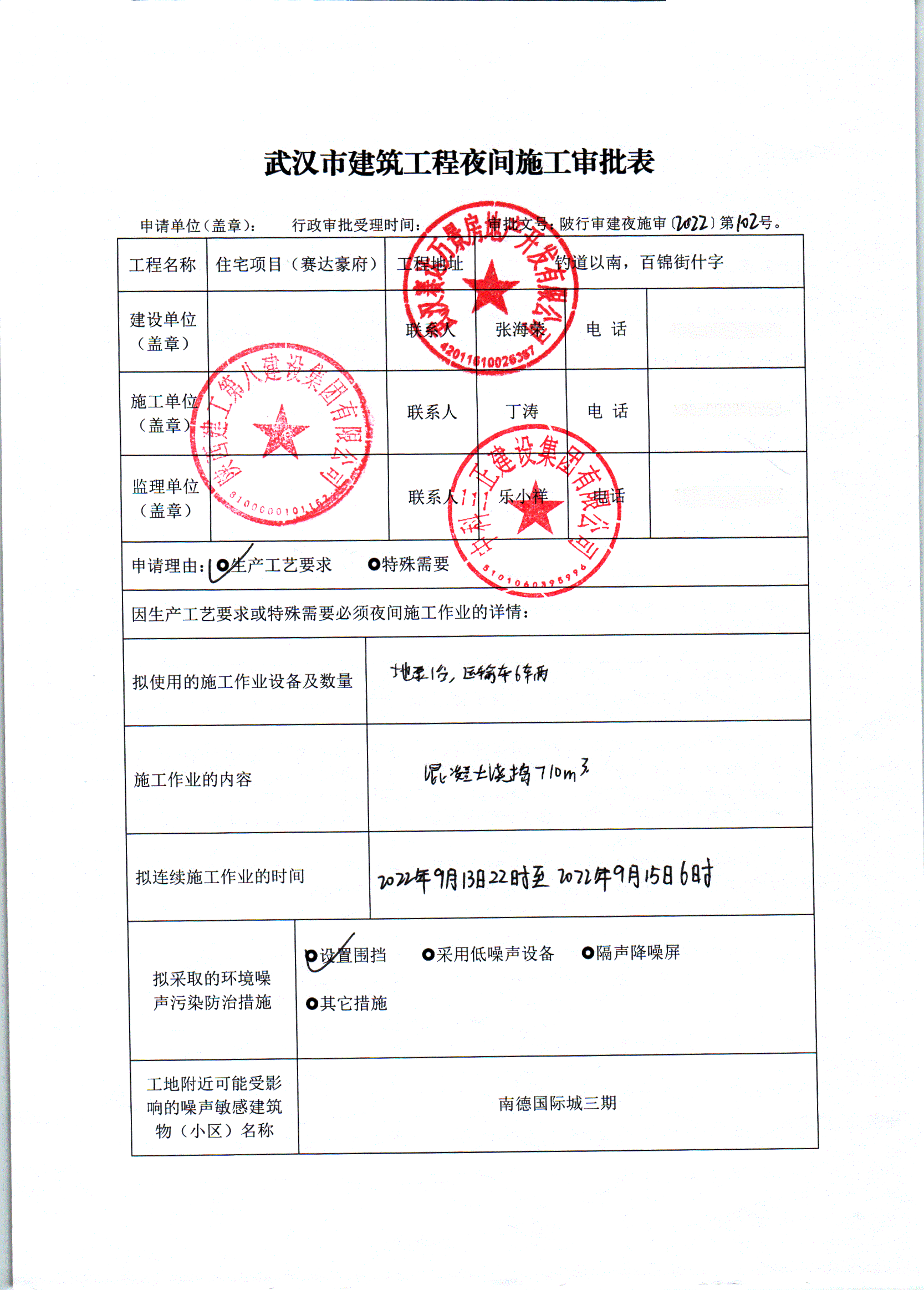 住宅项目(赛达豪府)夜间施工审批公示