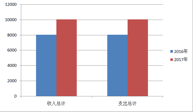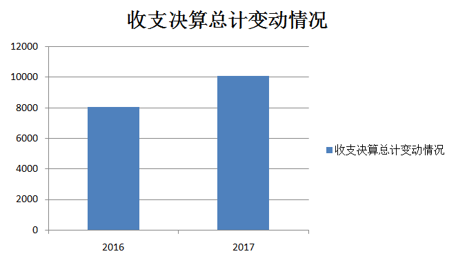 2017年度收、支总计10,070万元。与2016年相比,收、支总计各增加2,031万元,增长25.26%,主要原因是人员工资经费的增加,加大了基础设施建设等项目的投入。