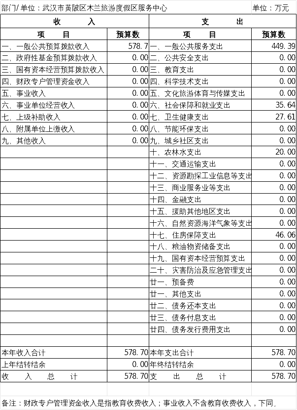 按照综合预算的原则,黄陂区木兰旅游度假区服务中心所有收入和支出均纳入部门预算管理。