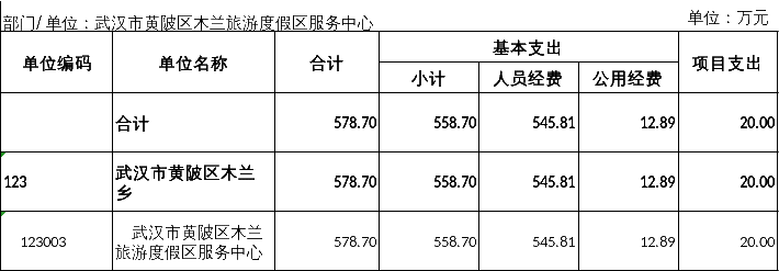 从预算单位构成看,黄陂区木兰旅游度假区服务中心部门预算包括:黄陂区木兰旅游度假区服务中心本级预算。