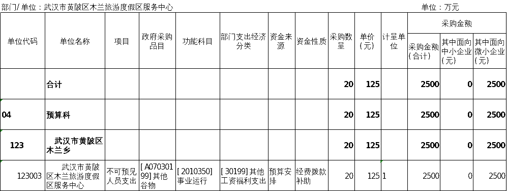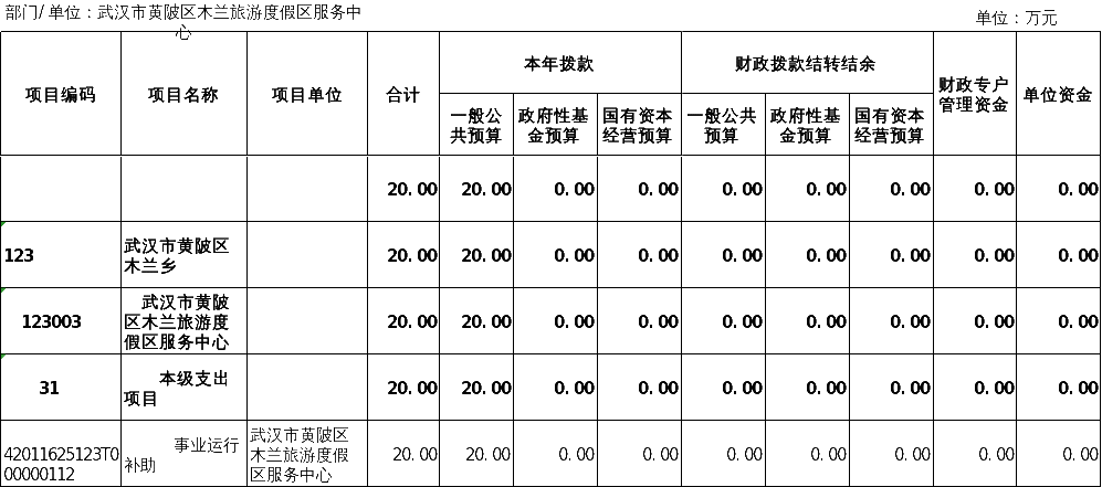 1.黄陂区木兰旅游度假区服务中心本级