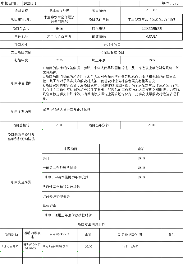 2025年项目支出20万元,其中:一般公共预算本年拨款20万元。具体使用情况如下: