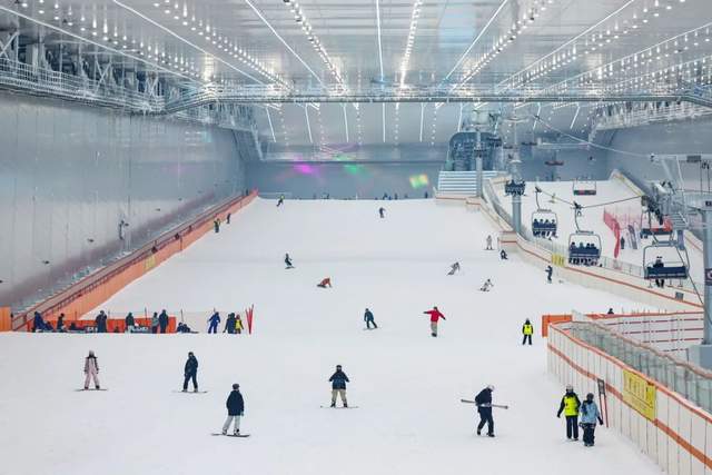 作为华中首个超大规模“冰雪+”文旅综合体,规划建设冰雪综合体、宋式水镇商街、民宿酒店集群等多元业态,致力于打造“一站式”度假目的地。其核心项目——甘露山国际滑雪场,以6万平方米的规模、73米垂直落差、400米最长直滑道,以及6条专业级雪道,成为全国规模最大、设施最先进的室内滑雪场之一。自去年10月开城以来,客流量达550万人次。