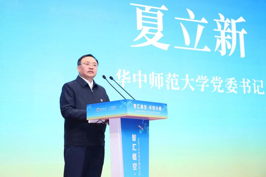 夏立新在致辞中表示,2026年是“十五五”规划的开局之年。湖北省正加快建成中部地区崛起的重要战略支点,武汉市正全力打造“五个中心”、全面建设现代化大武汉。黄陂区作为武汉临空经济示范区,战略机遇叠加,产业基础厚实,发展空间广阔。作为始终扎根湖北、服务湖北的百年学府,华师落地黄陂、黄陂选择华师,双向奔赴、彼此成就,恰逢其时、恰乘其势。华师将全力以赴把盘龙城校区建设成为人才培养的新高地、科技创新的新引擎和校地融合的新典范,催生跨越式发展的蓬勃气象。学校将一如既往为校友发展搭建平台、做好服务,希望广大校友继续关心和支持盘龙城校区建设和黄陂发展,共同书写合作共赢的崭新篇章。