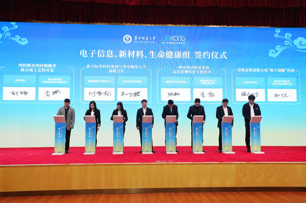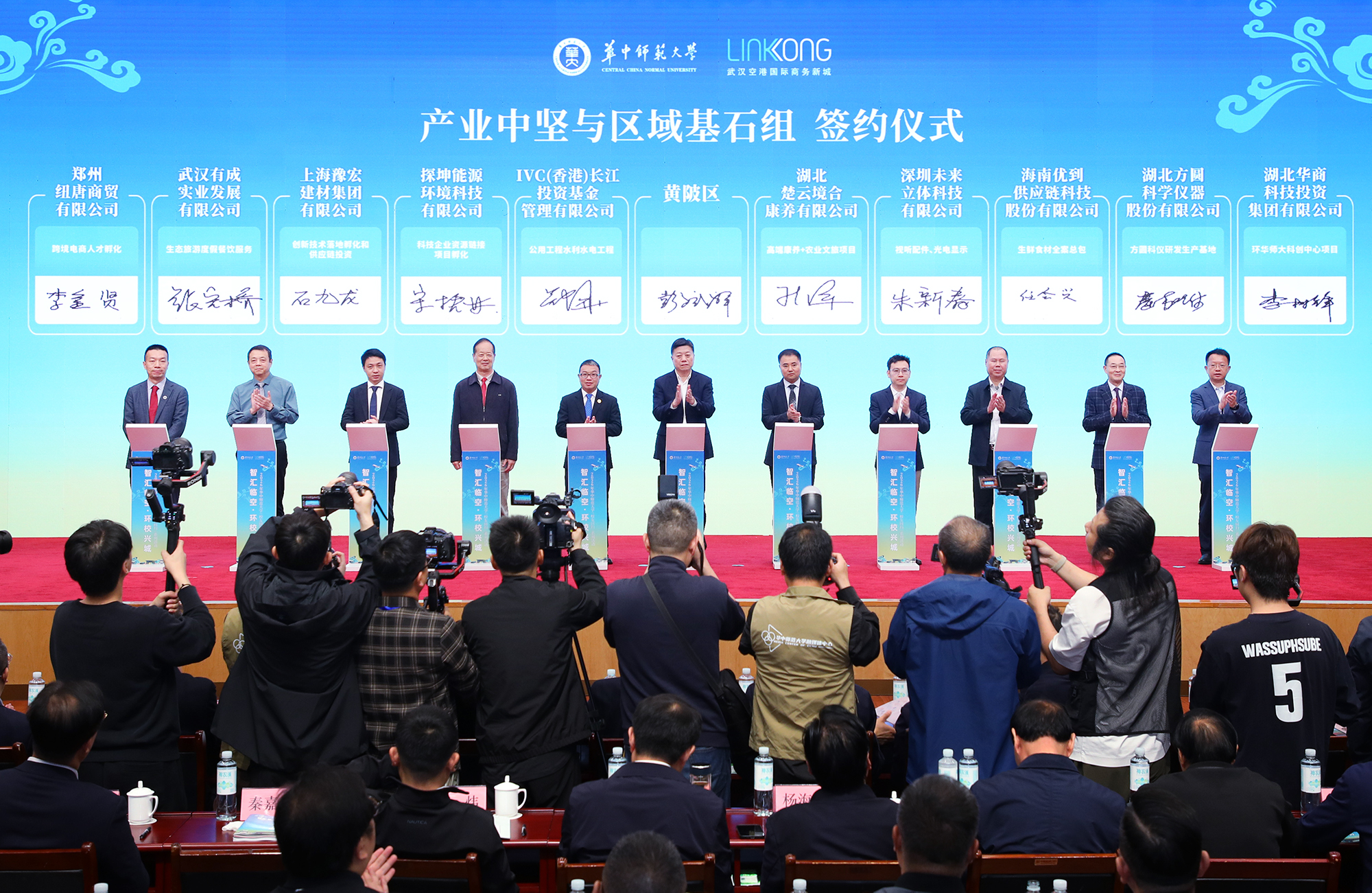 四川省宏图广志环保科技有限公司、武汉长广科技有限公司、美国湖人多媒集团公司、北京高途公益基金会、校友骆家旺、湖北乾沿建设工程有限公司、湖北嘉蓝蕊文化传播有限公司签署捐赠协议。华中师范大学校友企业家协会会长、紫光集团执行副总裁王慧轩作交流发言。