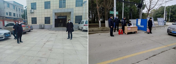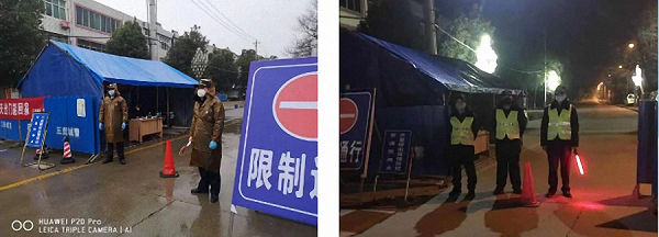 在武汉市宣布封城,进行交通管制后,所有进出三里桥街的路口也实行了封闭管理。为了守住关键路口,16名城管、保安队员三班倒,全天24小时驻守,认真开展测温、查看通行证、登记进出人员、对于无必须进出车辆进行劝返等工作。此外,为了维护街卫生院就医秩序,4名城管、保安队员,轮班值守在街卫生院。无论下雨还是下雪,无论白天还是黑夜,他们都恪尽职守,严格把好疫情防控第一道防线,把住群众的“健康门”,全力守护好三里桥人民群众的生命安全。