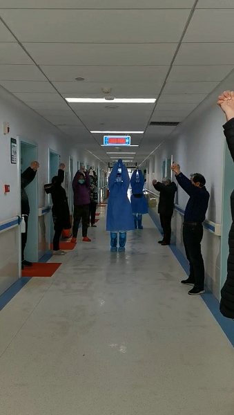 呼吸内科护士长唐建敏介绍:来的第一批患者都是高烧来的,反复的高烧,病人非常烦躁。我们不仅要跟他们做治疗,还要做心理护理。在这个过程中,余平同志确实起到了带头作用,虽然她当时还只是一个入党积极分子,不是正式党员,但她还是冲锋在前,跟一些非常焦躁不配合的病人做思想工作。如果遇到一些病人非常烦躁、辱骂护士的情况,她也是默默地听着,然后耐心地跟病人解释。