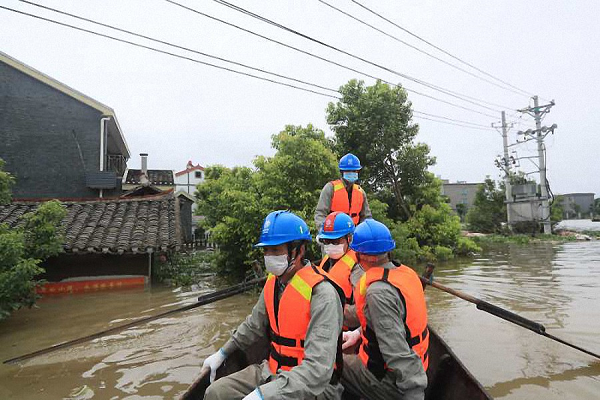 “变压器不能淹,去前面看看!”面对险情,工作负责人汤程立即指挥,其他班员借来皮划艇,大家迅速分工,章腊生熟悉地形负责划船,徐兴章、季光新两人压低重心保持船身平稳,仔细巡视检查线路设备,观测沿途的配电箱,记录临界的配电箱。由于受灾区域面积较大,他们的船不停地穿梭在每一条线路和台区,确认无任何异常情况后方才返航。