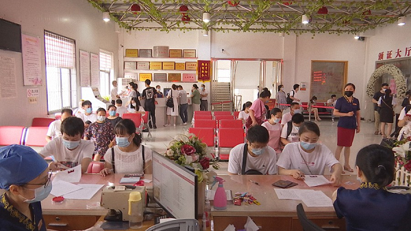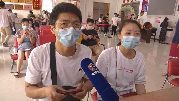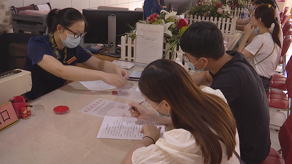 据悉,每年七夕都是登记高峰,为满足新人们“喜结良缘”的美好愿望,区婚姻登记处做了充分准备,采取了各种有效应对措施,对设施设备和信息系统进行了检查维护,提前办公时间,并增派工作人员,由专人测量体温维持秩序,防止人员聚集。据相关负责人介绍,今天我区网上预约成功和当天现场登记办理登记的新人达到200余对。