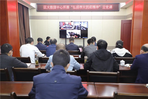 这是区大数据中心机关党支部、车站社区党支部、李集街郑店村党支部,首次用上云视频会议技术,共上首堂云党课,“全国抗击新冠肺炎疫情先进个人”李林同志向党员群众“云”讲述自己奋不顾身战疫情的故事。这种“云党课”方式颇受好评。