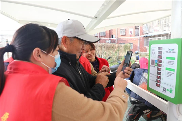 “就在2个月前,小区电线犹如蜘蛛网,甚至有从6楼飞线下来给电动车充电的,现在电动车都有序停放在智慧充电棚,再也不用担心用电安全了,下沉党员和社区在为我们群众办实事。”周爹爹激动的说。