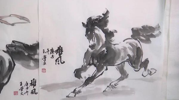 王学文是我区职校美术高级教师。2014年,因为职校和区老年大学教学的需要,他开始钻研国画。经过多年的刻苦钻研,王学文的国画创作水平不断提高,题材广泛,最擅长画马。他笔下的马生动逼真,形象自然。