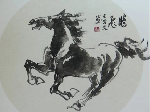 初见王学文的时候,他正在自己的画室里画马,寥寥几笔线条勾勒,一匹奔腾的骏马就跃然纸上,活灵活现,充分显示了他的成竹在胸和娴熟的技艺。