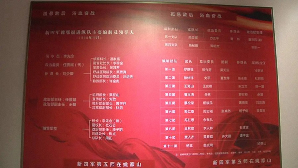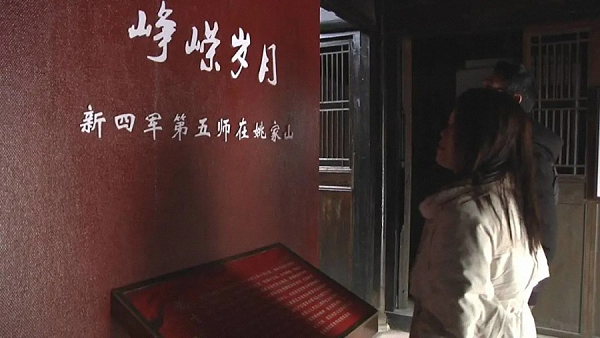 新四军第五师历史陈列馆管理员刘燕霞:当时,军队几百号人住进了姚家山各家各户,与村民们同吃同住。据说,新四军在姚家山驻扎了6年,与当地村民相处非常融洽。1941年,新四军从战场上缴获的战利品,都和村民们分享,一家一户地给村民的门上挂猪肉。
