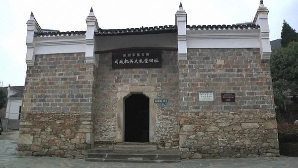在司政大礼堂旧址,李先念、陈少敏等当年在此办公。自新四军第五师来到姚家村后,村民便主动把祠堂提供给部队作为司政机关大礼堂。礼堂一楼是李先念办公的地方,也是当时的战略指挥中心,第五师在这里召开大型会议。