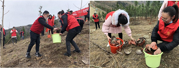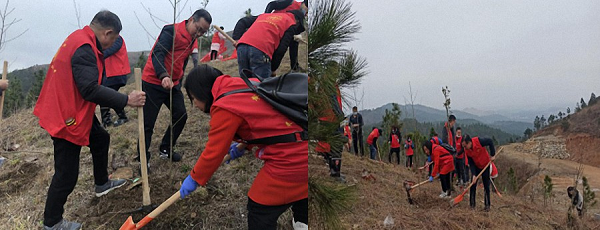 3月9日上午,各机构报名参与义务植树造林的志愿者们,在黄陂区李家集街城岗村龙王尖集合,大家三五人一组,拿起铁锹,挖坑、放苗、扶正、填土、压实,认真培好每一锹土,植好每一棵树,保证新栽树苗存活率。一上午的时间,一片小树苗迎风而立,为初春的龙王尖古遗址增添了一片生机勃勃的绿色。