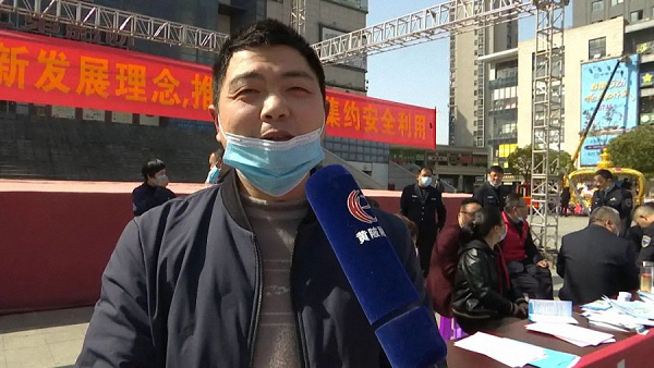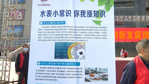 居民熊先生:今天我到黄陂广场来学习“世界水日”“中国水周”的宣传知识,了解到中国水资源的稀缺性,通过宣传资料了解到水表怎么使用以及各种水表的型号,水是生命之源,很重要,今后在生活中我们要养成节约用水的好习惯。