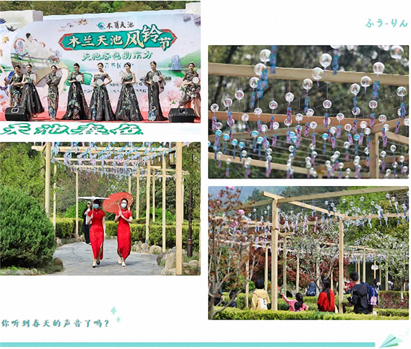 3月28日,由黄陂区文化和旅游局主办,武汉市丰太木兰天池旅游有限公司承办的“天池春色韵东方”2021木兰天池第六届国际风铃节在木兰天池景区盛大开幕!