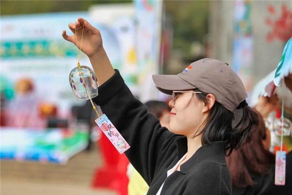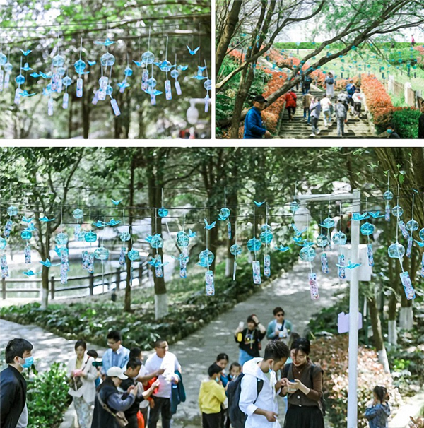 除了观赏、倾听,游客朋友们还可以在互动体验区还领取许愿风铃,写上愿望,连同风铃一起悬挂,祈愿平安喜乐,万事皆胜意;又或者跟着老师一起亲自手绘DIY一个专属于自己的风铃~