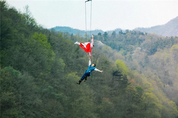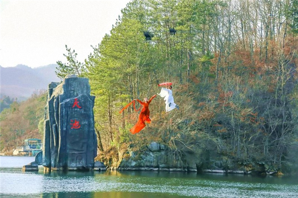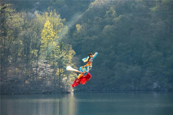 2021年木兰天池依托于独特的自然生态资源及醇厚的历史人文背景,全新主题化打造湖北首个空中沉浸式主题体验项目——《天池飞仙》。项目采用高空威亚技术,让游客飞跃木兰天池之上,在一览天池美景的同时,开启飞檐走壁、御剑飞行的“仙侠梦”。