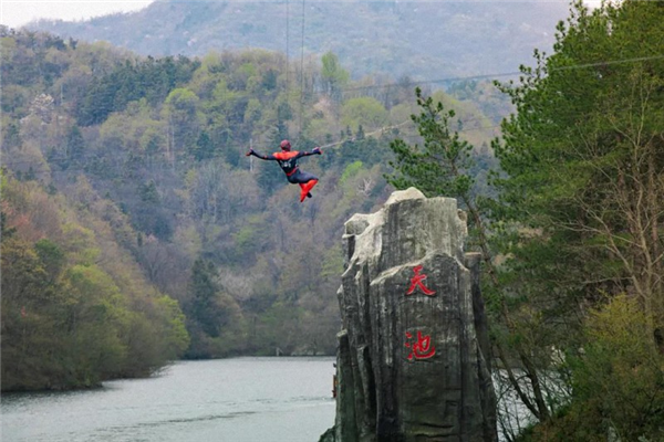 飞跃天池间,览峡谷春色;乘画舫游船,舟行碧波上,赏花观景亦逍遥。喜欢寻求刺激的朋友可以体验七彩滑草、极速飞索的速度与激情。
