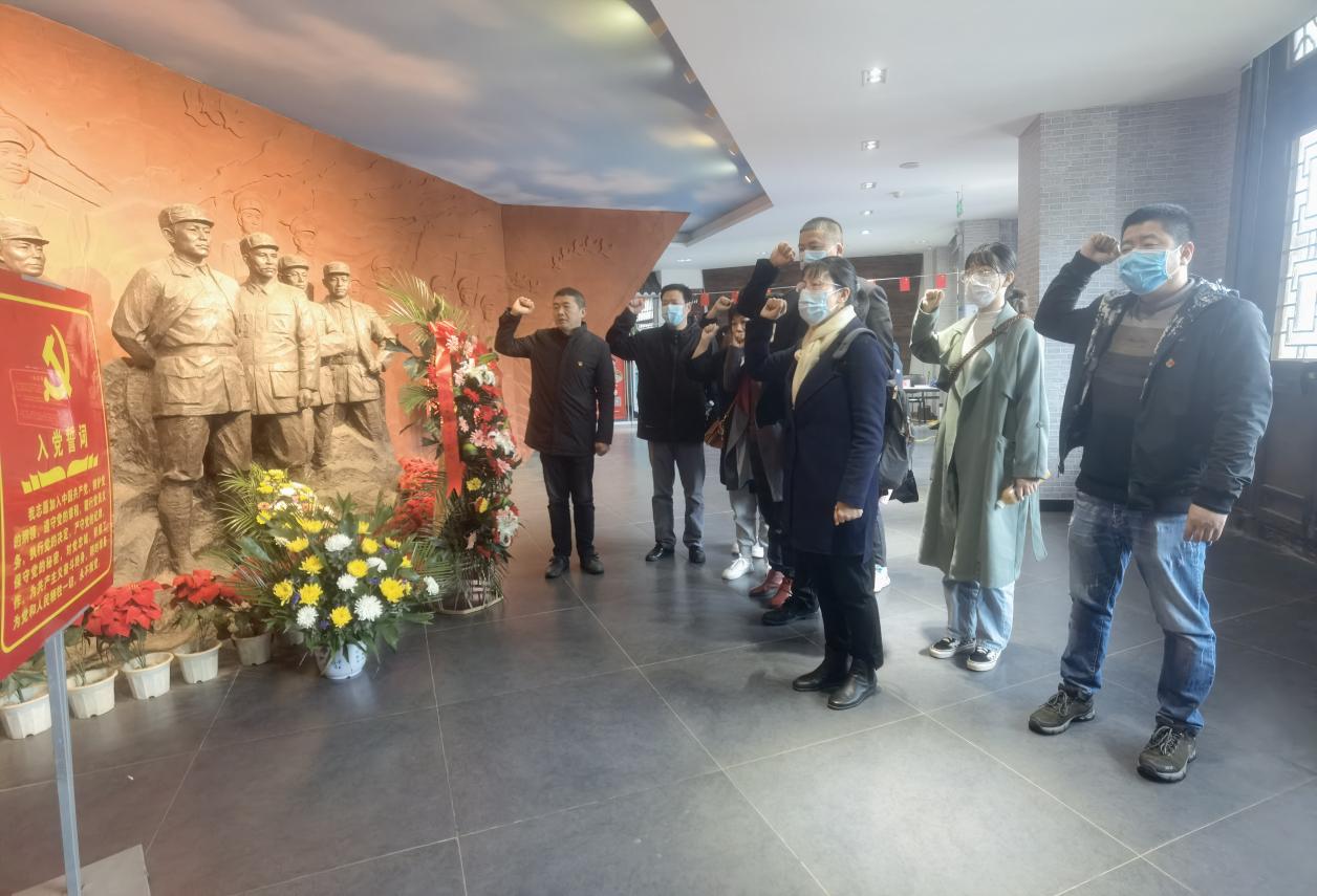 参观前,全体党员在支部书记胡波同志带领下,向烈士群像敬献花篮并重温入党誓词。