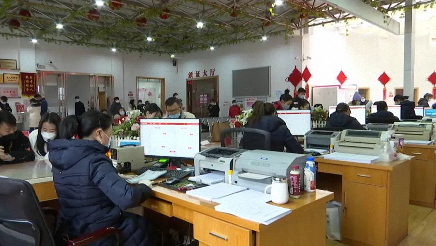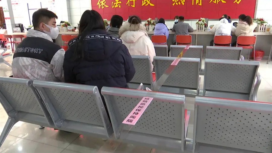 早上8点半,记者在区民政局看到,前来办理婚姻登记手续的准新人们需在一楼出示登记预约短信、健康码、行程码、登记照片、户口簿、身份证等登记材料,审核无误后方可进入三楼办理业务。新人进入办事大厅后,也有专人指导大家填表、审核手续。同时,因疫情防控需要,已暂停开展结婚登记颁证仪式和婚姻家庭辅导等相关服务,业务办理时间相比往日稍有减短,现场环境井然有序。