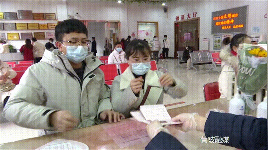 来自黄陂的刘女士和来自新洲的徐先生异地相爱多年,两人共同选择在今天这个充满爱的日子走进婚姻殿堂,对未来的婚姻生活他们也有着美好的憧憬。