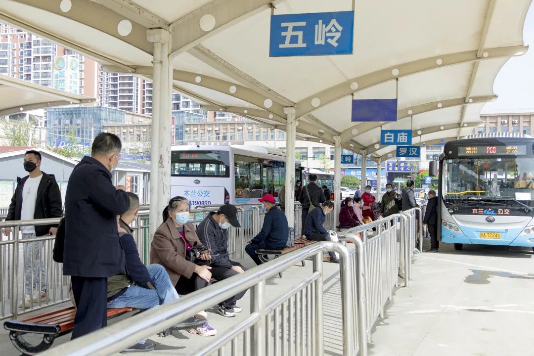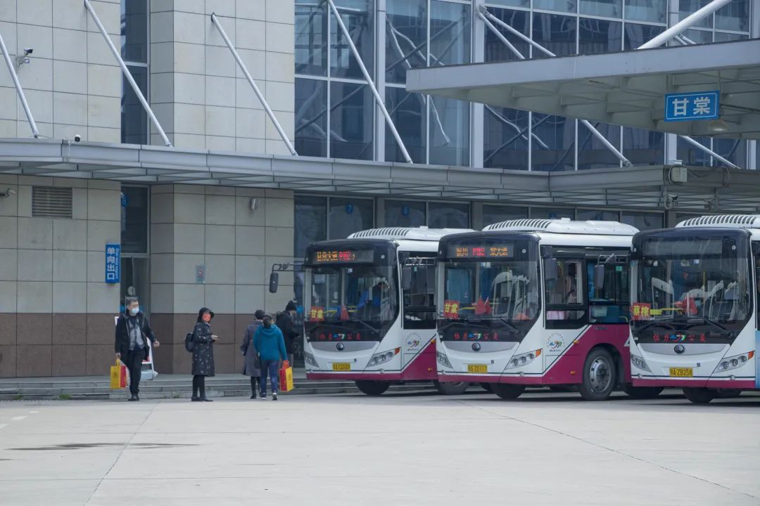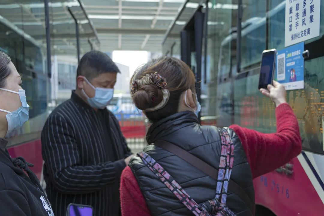 在黄陂区客运中心,新增临时停靠长乐园墓区站点的公交专线正在运行,车辆旁边和前挡风玻璃上均有醒目的祭扫专线指示牌。乘客在工作人员的引导下,扫码测温,有序排队上车。