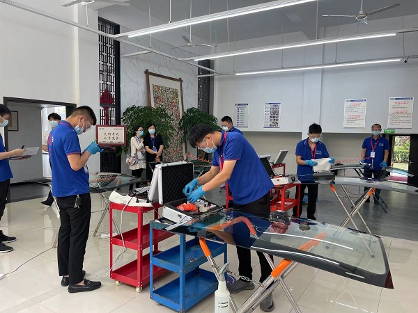 “汽车挡风玻璃破损居然还可以修补?!”5 月 26 日上午,在武汉市首次专项职业能力考核“汽车玻璃安装”项目现场,捷瑞汽车玻璃 26名精英蓝领展示了这一实操新技能,精湛的专业水平得到了检验和认可。市职鉴中心和黄陂区人社局鉴定所相关人员到现场督考和指导。