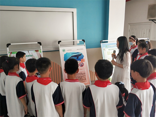 ▲前川五小王曼老师给孩子们讲解环保知识