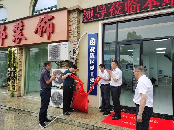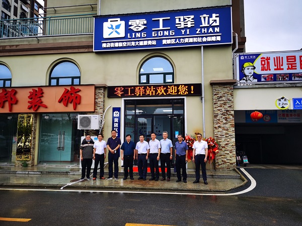 2022年6月24日,“黄陂区零工驿站横店街临空川龙大道服务站”举行揭牌仪式,武汉市劳动就业管理局、区人社局、横店街等单位主要领导现场为“黄陂区零工驿站”揭牌。